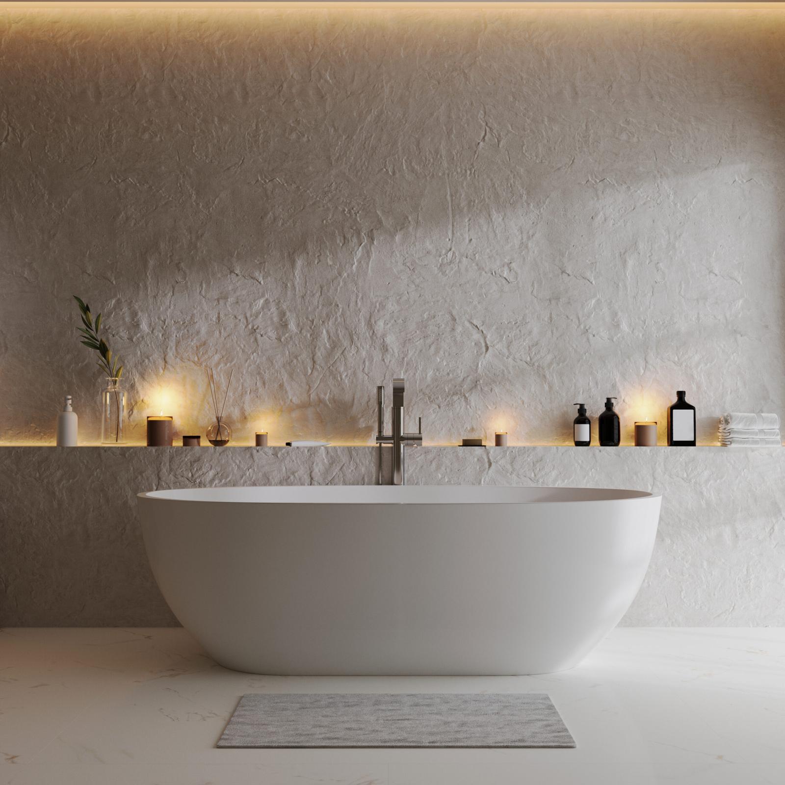 Umelý kameň je ideálnou voľbou pre dizajnovo výrazné kúpeľne. Najčastejšie sa používa ako akcentový prvok.