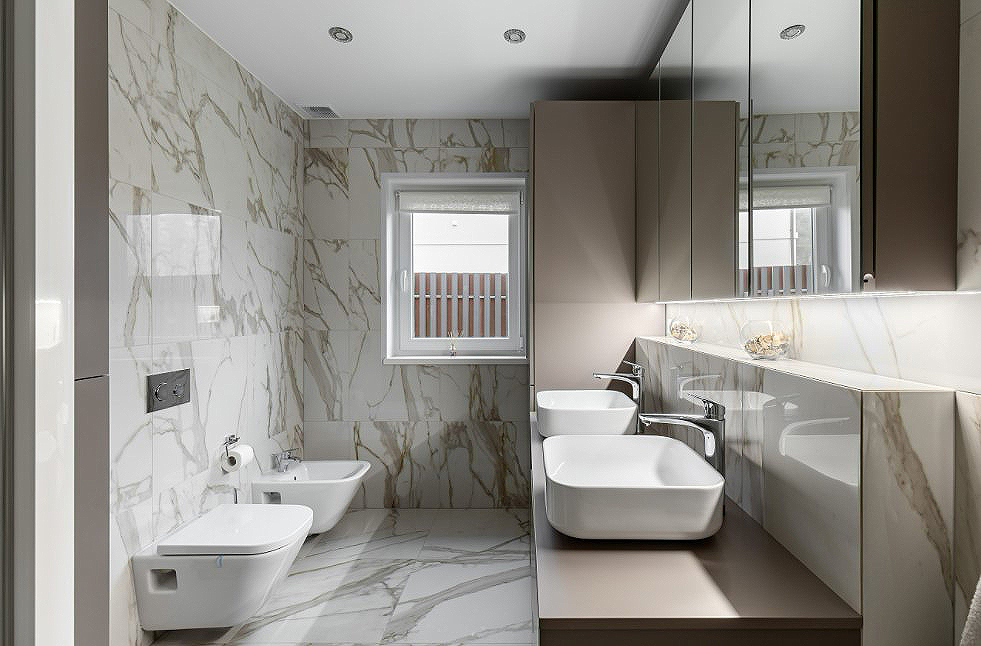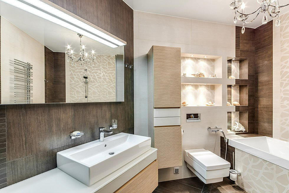 Je lepšie vybrať si batérie a sprchové hlavice, ktoré sú zapustené do steny. Prístupná zostane len ovládacia časť, výtoková rúra a dekoratívne detaily. Moderný nábytok je zvonku stručný a zvnútra multifunkčný.