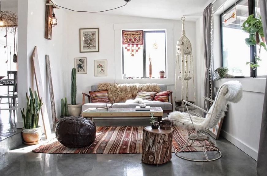 Vďaka hippies nabral boho štýl nový dych, zbavil sa nádychu dekadencie a nadobudol atmosféru uvoľnenia a radosti zo života. Hippie boho interiér je naplnený etnickým dekorom, makramé, lapačmi snov, rôznymi hudobnými nástrojmi a miliónom vankúšov, ktoré sa dajú rozložiť na podlahu okolo vodnej fajky.